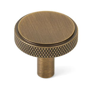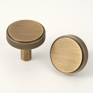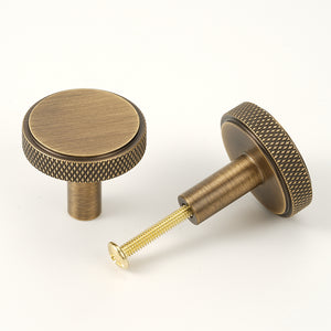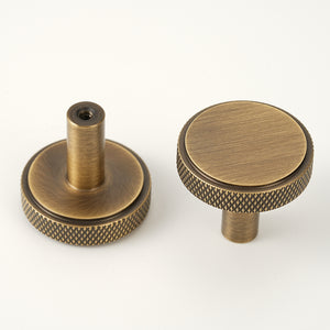 Solid Brass Cabinet Knob 1.4" (35mm) Diameter Antique Brass Knurl Drawer Knob