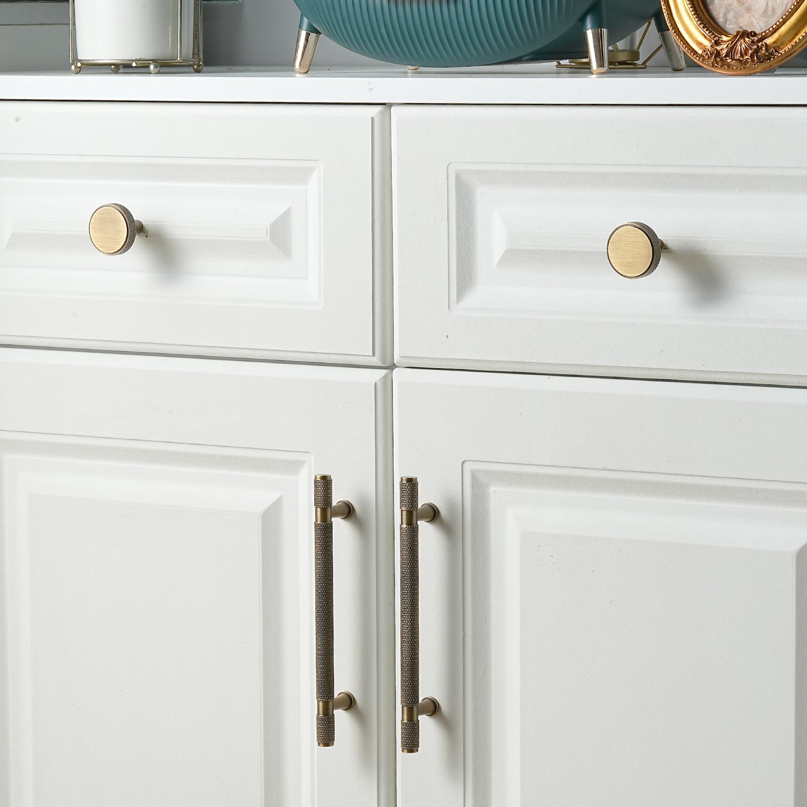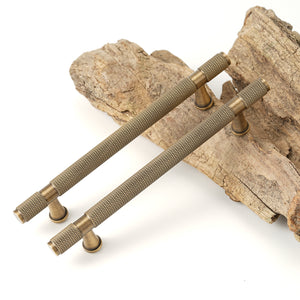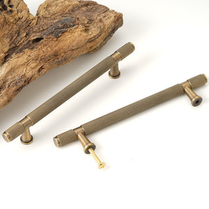 - Knurled-style hardware handles have recently become popular, bringing an industrial and modern tech vibe to your home, making your cabinets, drawers, and cupboards feel more contemporary. The knurled design enhances grip, making it easier to use cabinet handles in daily life. The solid brass material not only adds a premium feel to the pulls but also ensures greater durability. The thick and sturdy pull also serves as a decorative element, making your cabinets stand out as a focal point in your home.